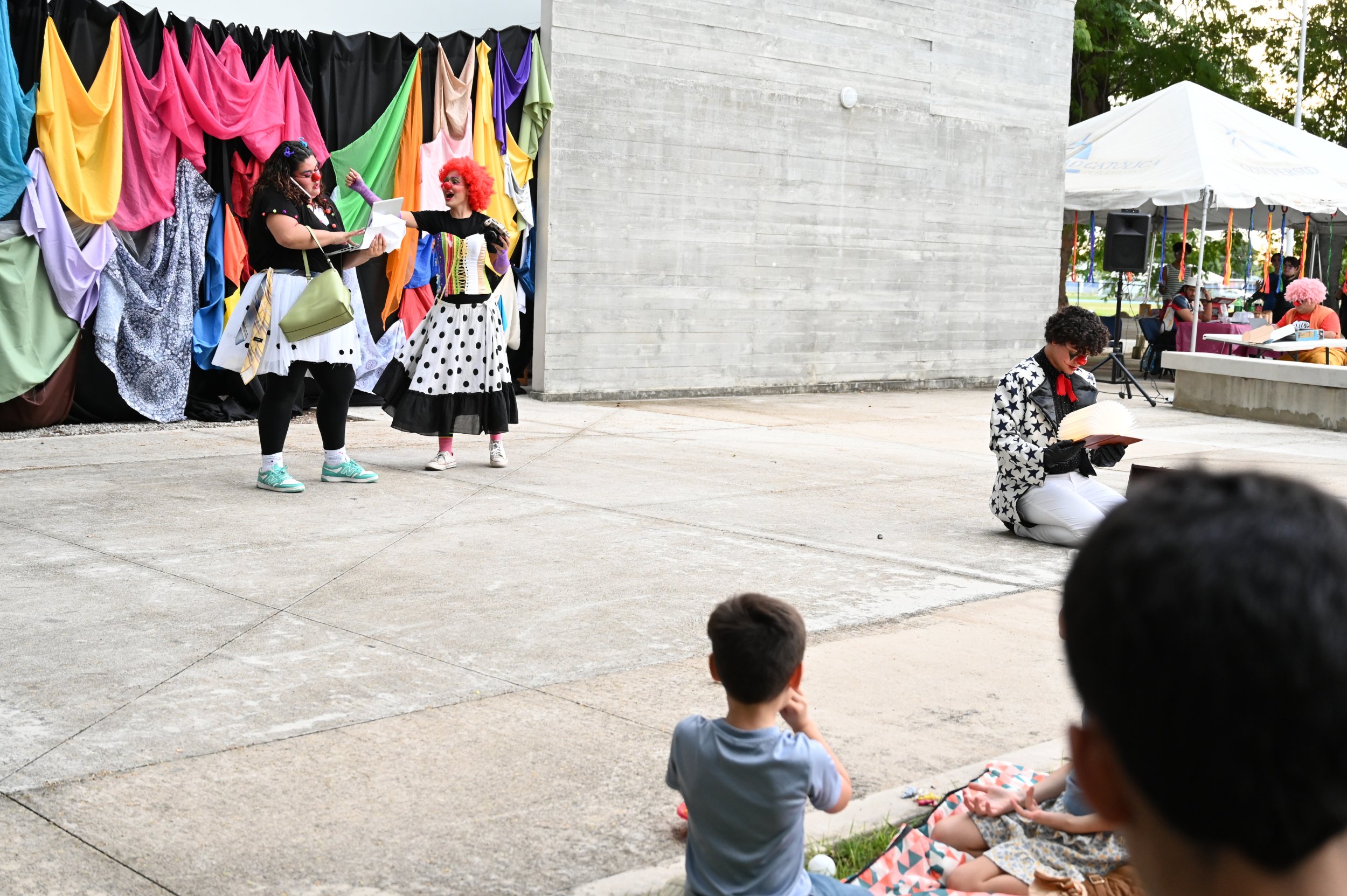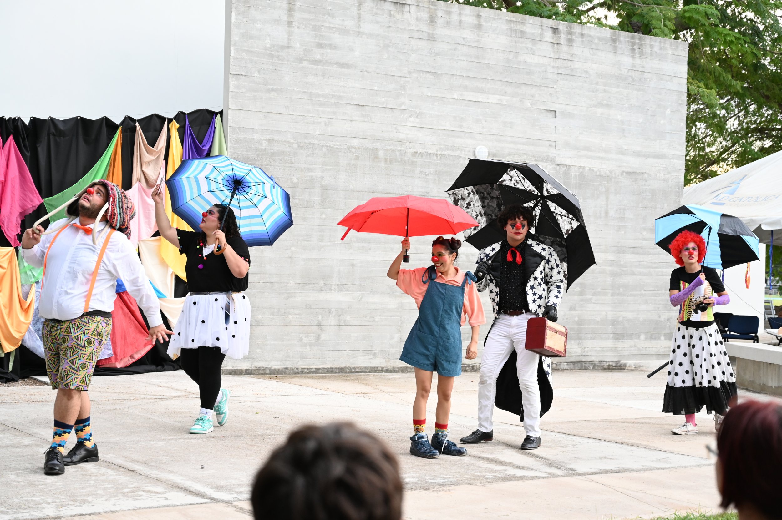 La espontaneidad, la creatividad y la risa en su máxima expresión contagiaron a todos en la plaza exterior de la Sala de Teatro Experimental del recinto de Ponce. Catorce estudiantes del curso Montaje Teatral se las ingeniaron para hacer reír a chicos y grandes en un espectáculo único nacido del juego y la poesía del clown.