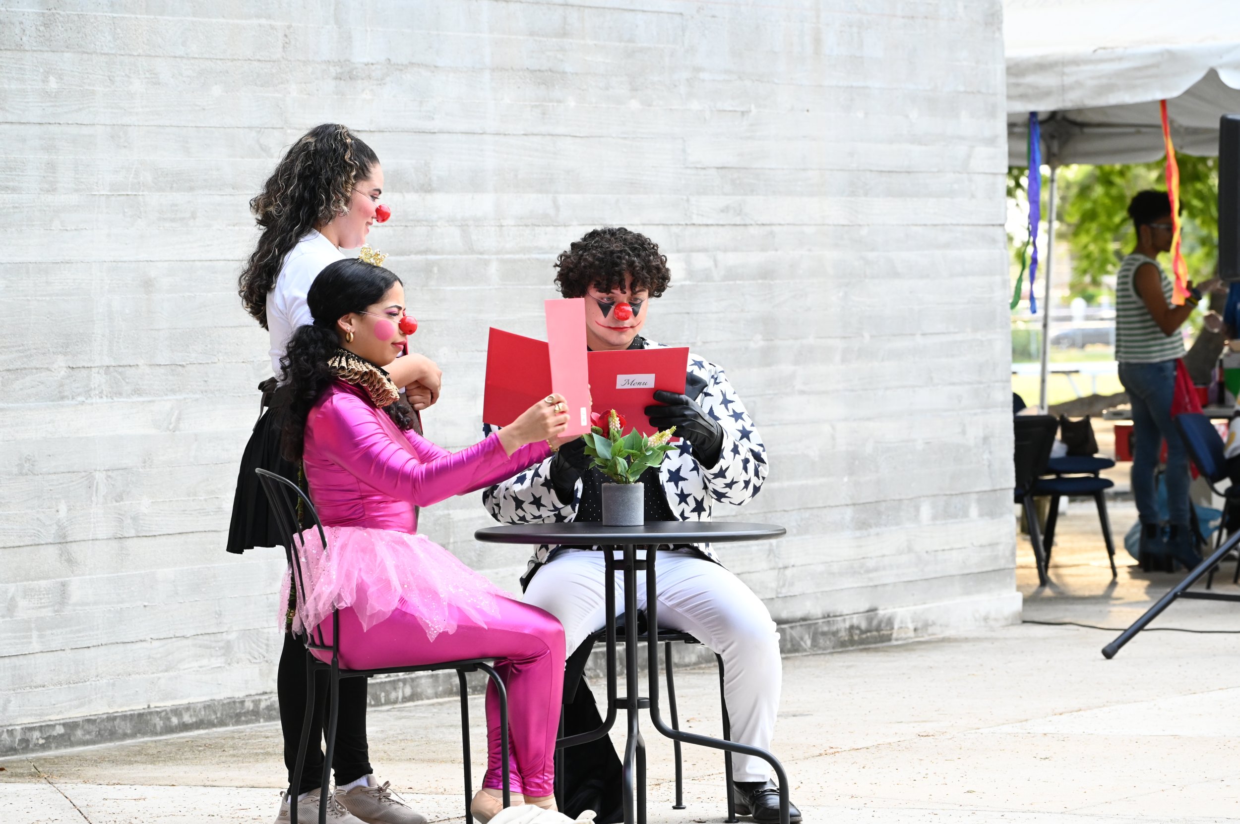 a profesora Lauryliz González explicó que Clowntástico son diversas piezas presentadas como parte del pequeño festival de clowns en un escenario único, en contacto con la naturaleza. “Son pequeñas piezas que surgen de la improvisación de la creación colectiva, cuentan diversas historias, todas muy divertidas, con finales felices gracias a la técnica de clown. Ellos están en escena con sus diversos clowns en distintas presentaciones e improvisaciones. Desarrollan cada una de las historias y lo estamos haciendo aquí, en las afueras de la Sala de Teatro Experimental, buscando tener teatro, en el exterior, al aire libre, como si estuvieran en un parque. La Asociación Teatral Universitaria y Trapiche Pionero formaron parte de esto. Es tener aquí un ambiente de circo en las afueras de la Sala”, insistió.