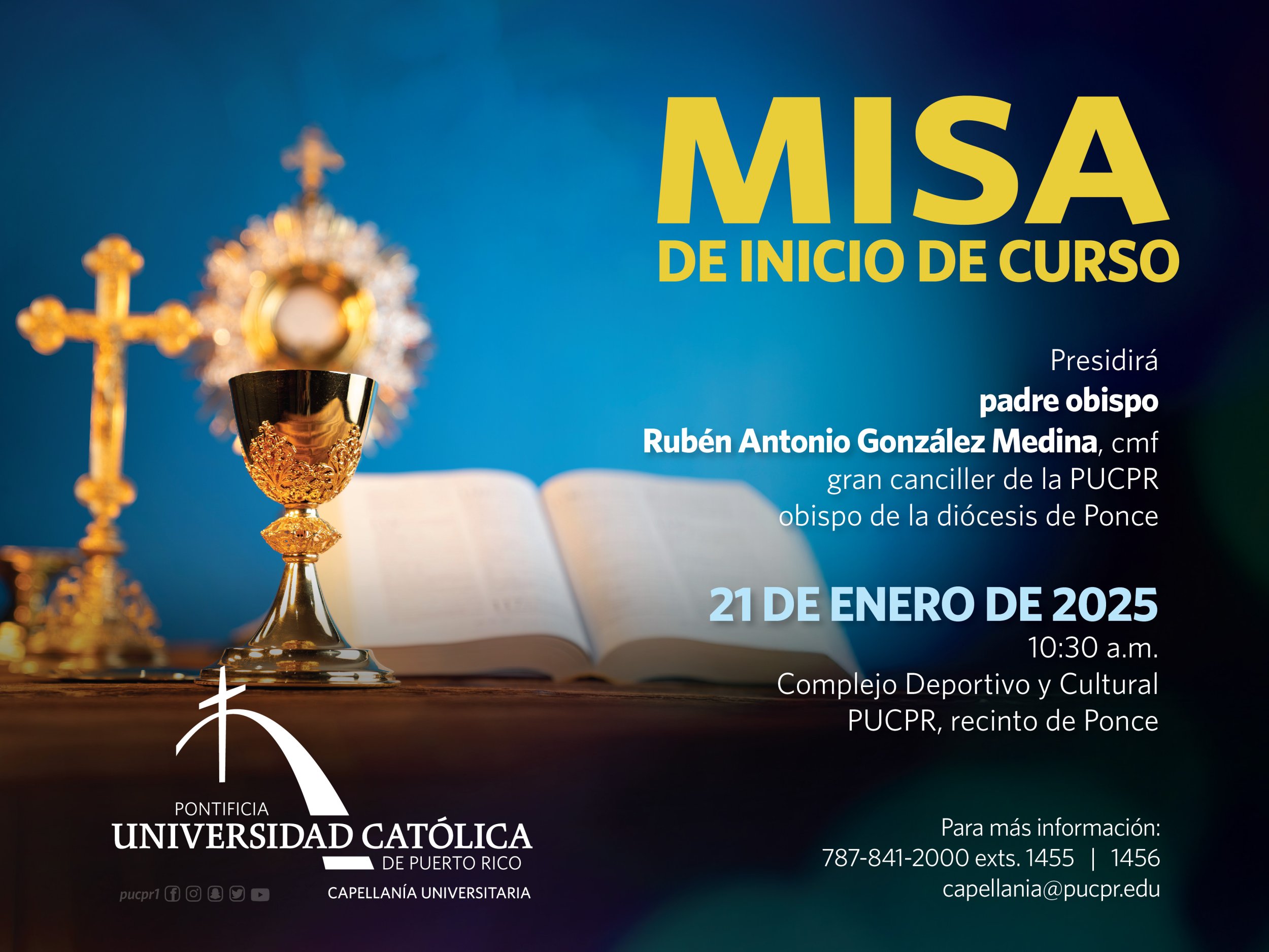 ¡Comencemos el semestre con una bendición especial! By celimer_torres@pucpr.edu | January 15, 2025 Misa de Inicio de Curso para agradecer, reflexionar y encomendar este nuevo año académico a Dios Posted in General ← ¿Tienes talento, pasión y ganas de representar a La Católica?Perspectivas sonoras: 1er encuentro de estudios musicales de Puerto Rico →