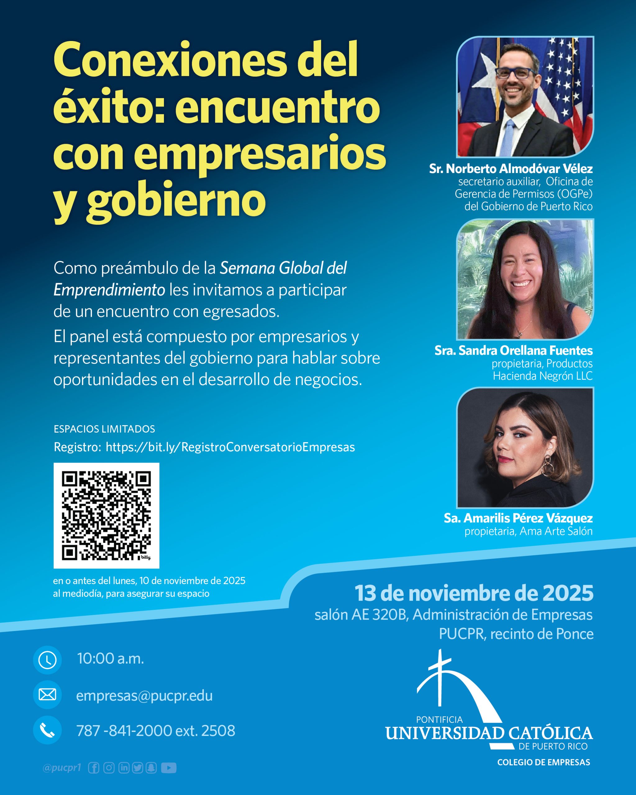 Conexiones del éxito: encuentro con empresarios y gobierno By celimer_torres@pucpr.edu | November 6, 2025 Un panel de egresados Pioneros conversan sobre las oportunidades en el desarrollo de negocios. Posted in General ← Donde hay música… lo hay todo¡Prepárate para Son Borincano! →