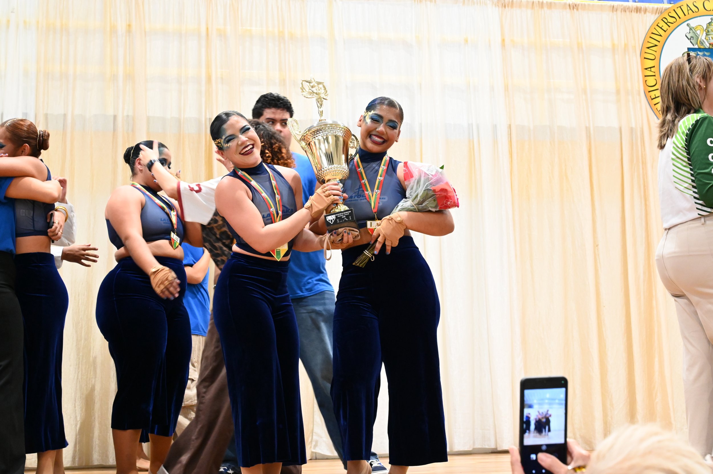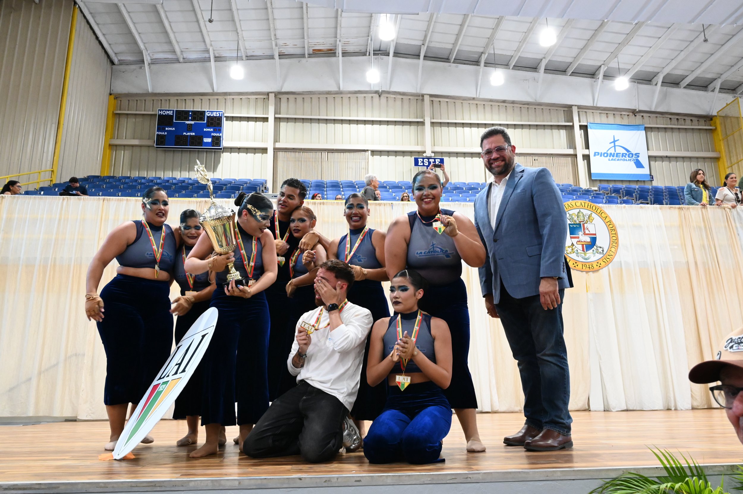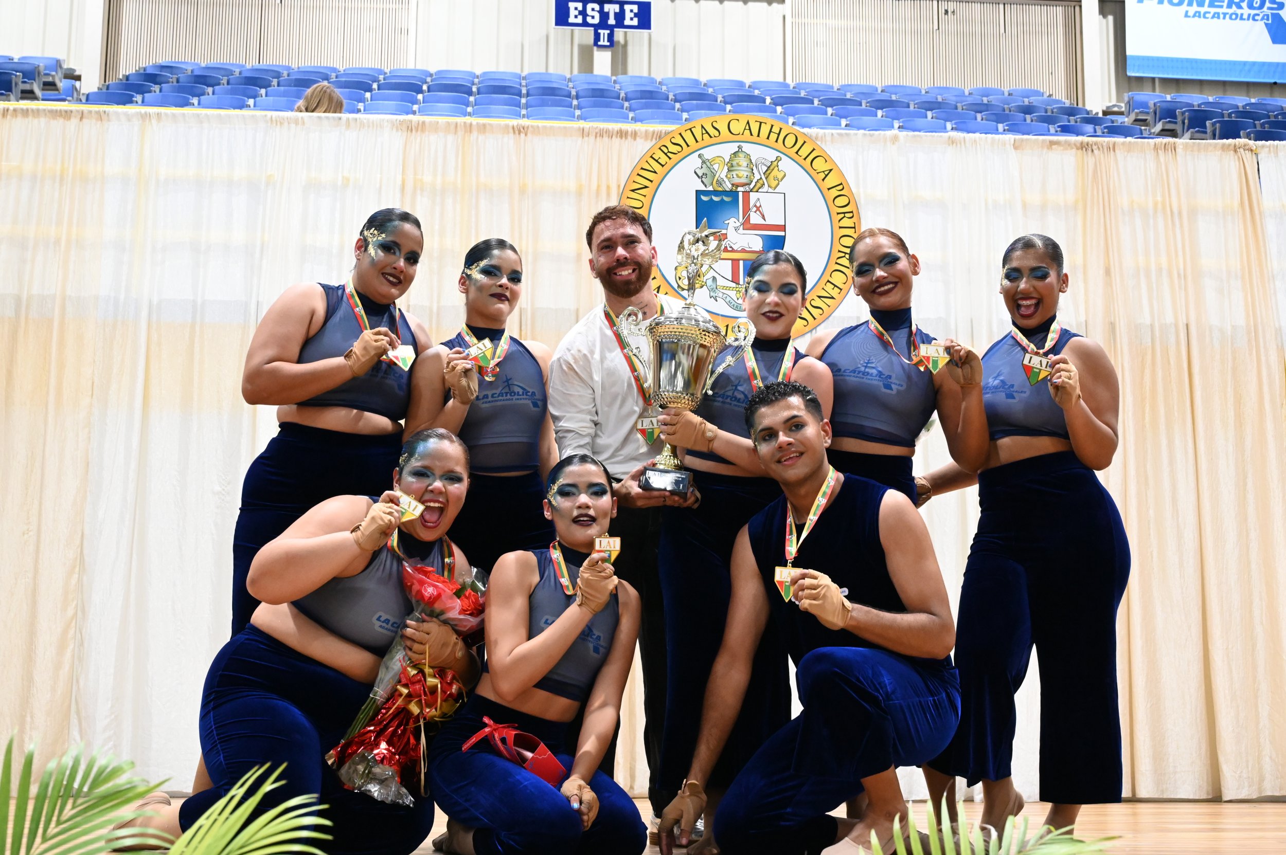 “Estoy feliz y sumamente agradecida. Este primer lugar lo logramos con mucho sacrificio, dolor y mucho esfuerzo y prácticas. Estamos agradecidos con la fanaticada y todos los que nos apoyaron. Esta victoria estaba para nosotros”. Emocionada con el trofeo en sus manos, Nancyelis Algarin Santiago, compartió palabras de alegría y agradecimiento como la capitana del equipo de Abanderados de la Pontificia Universidad Católica de Puerto Rico. Fue en su casa, como anfitriona de la competencia, que La Católica celebró con gran algarabía su medalla dorada.