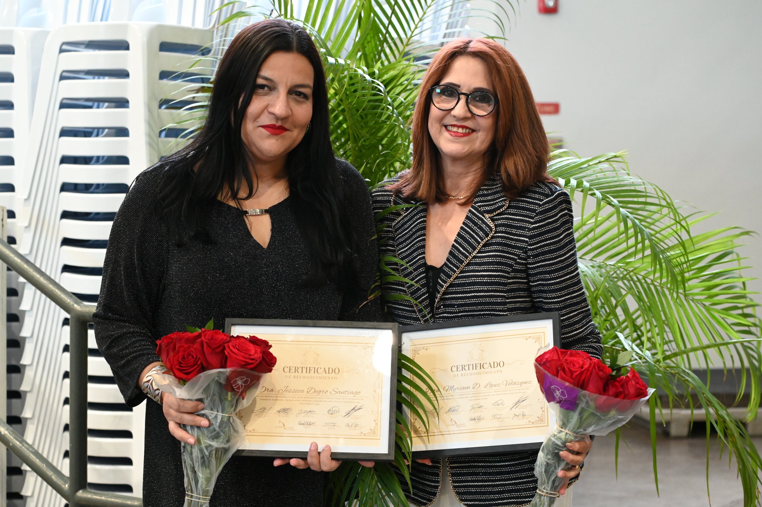 Uno de los momentos más emotivos de la noche fue la dedicatoria sorpresa a la Dra. Myriam López Velázquez, vicepresidenta de Asuntos Estudiantiles, y a la Dra. Jessica Degró Santiago, vicepresidenta asociada de Asuntos Estudiantiles. Ambas fueron reconocidas por su acompañamiento constante y por servir como guías fundamentales en los procesos de liderazgo y toma de decisiones del Consejo de Estudiantes. Su apoyo ha sido clave para el desarrollo, crecimiento y bienestar del estudiantado.